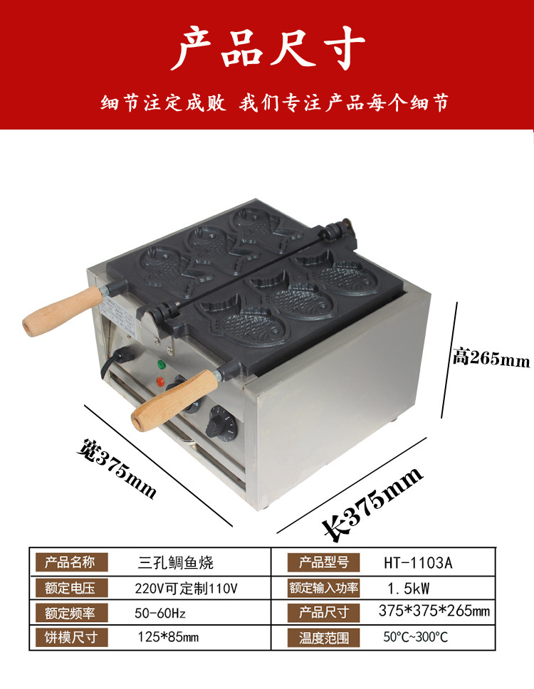 Commercial electric heating three-hole snapper machine Korean fish cake machine small fish go to market stalls snack equipment grilled fish discount