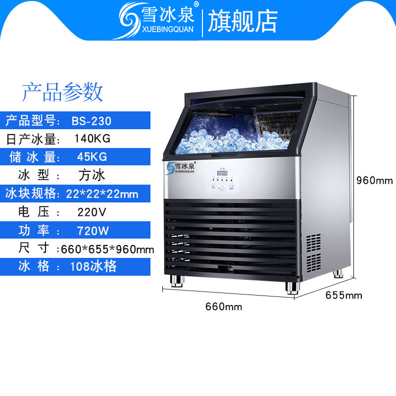 Snow ice spring ice machine commercial large 140kg hotels with large production milk tea shop equipment fully automatic ice machine square ice
