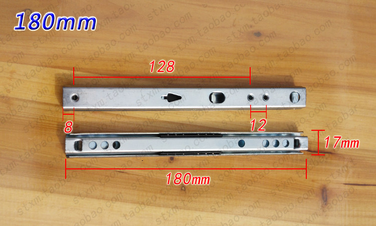Two-way slide rail 18cm bead drawer rail 17mm wide cabinet chute 2-section slideway 2-section narrow-side guide rail