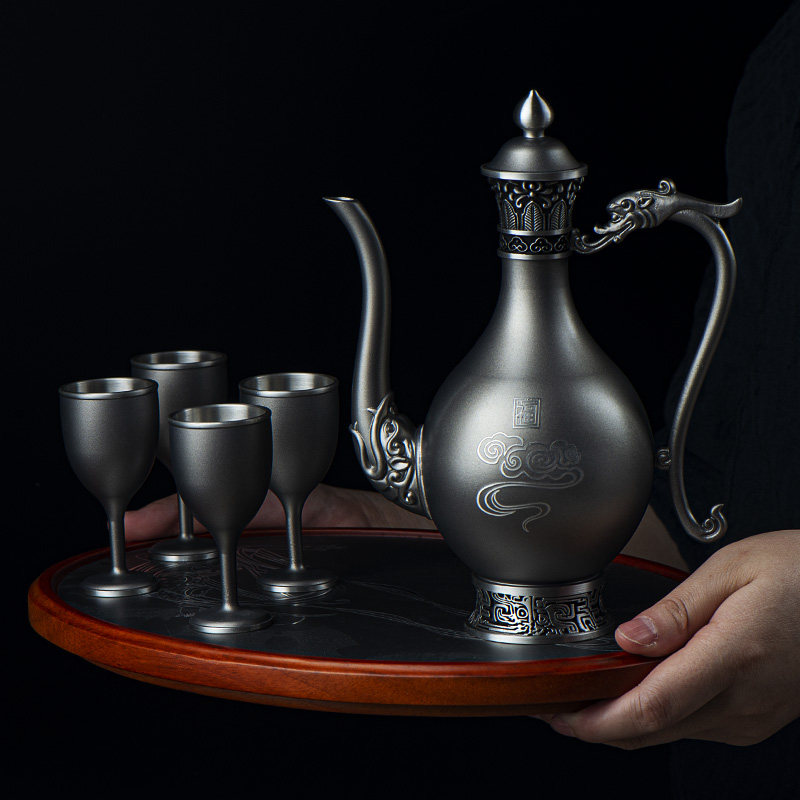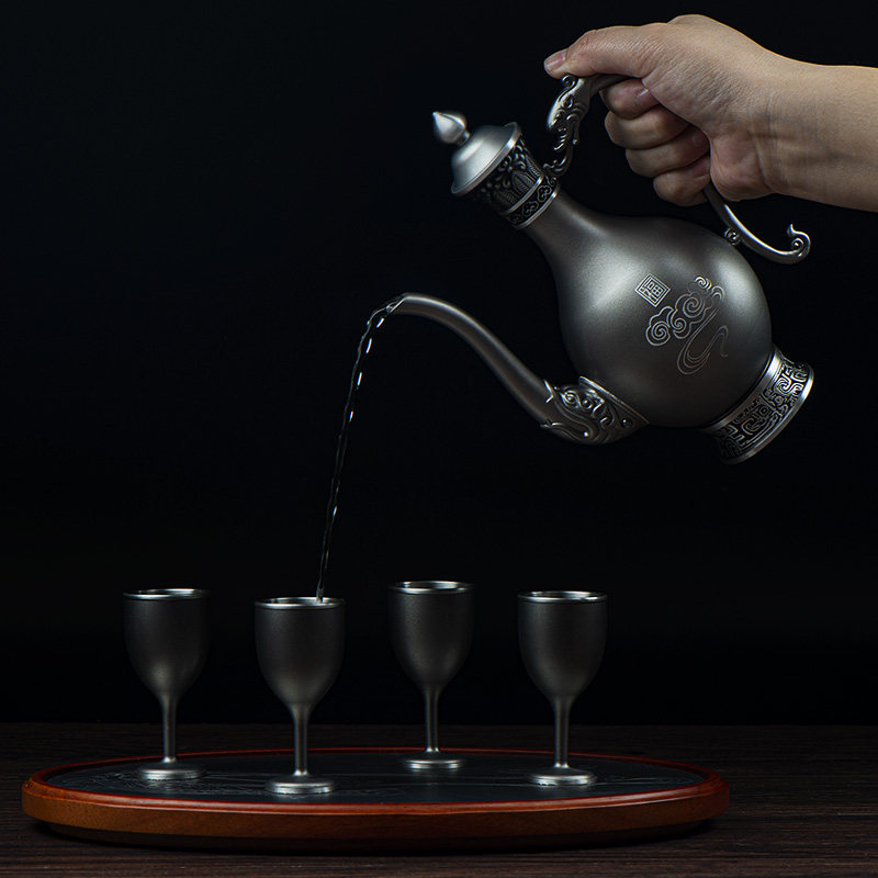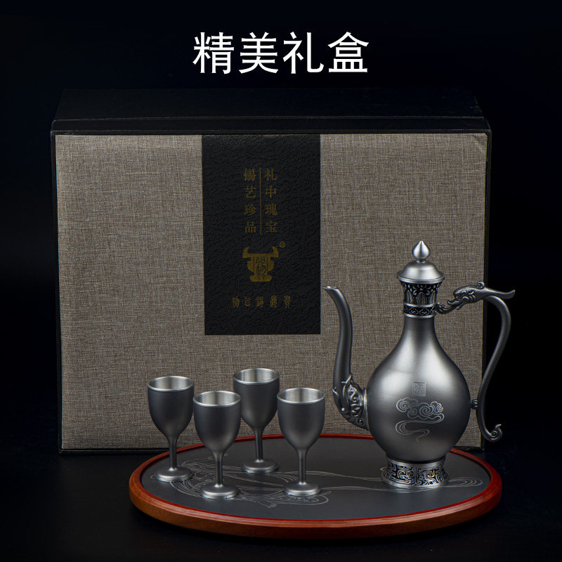 Miboyuan Pure Tin Wine Pot Imitation Ancient Wine Furniture Group Set White Wine Domestic Winemaker Wine Flush High Foot Cups Courtesy of Sider