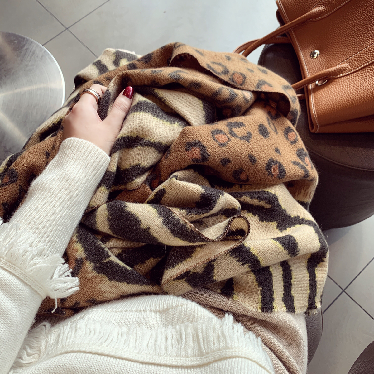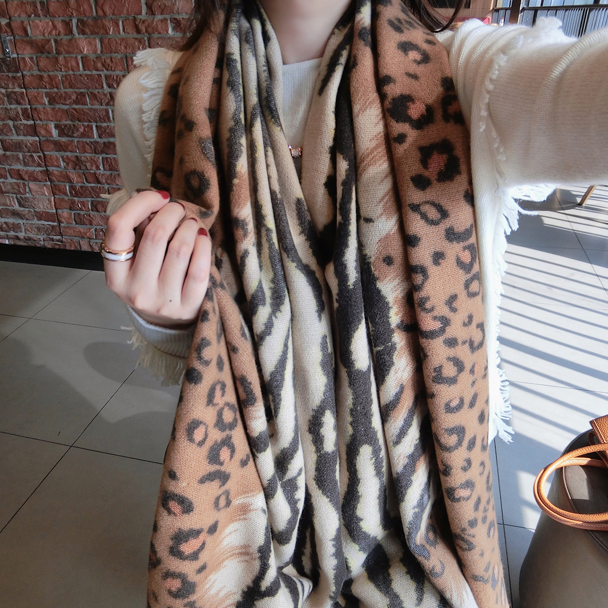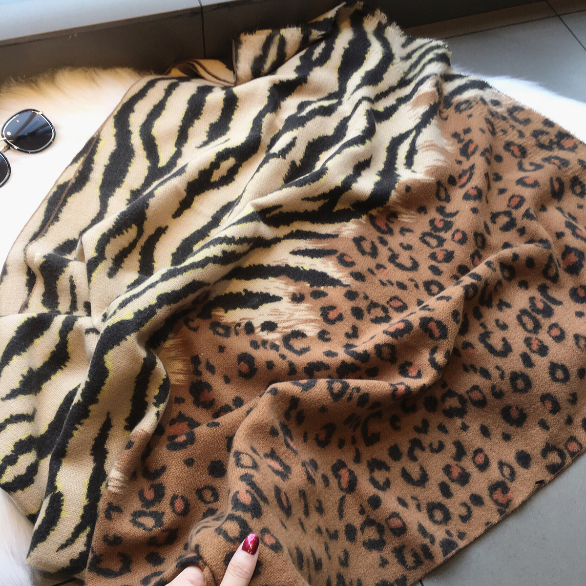 Xiao Xiao Fang Fall 2020 new European and American Bao WEN Zebra Bao WEN splice around cashmere scarf