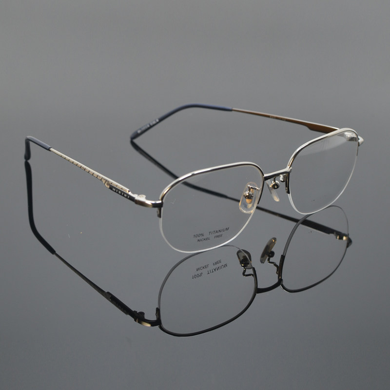 Pure titanium half-framed spectacle frame men with myopia eye frame anti-blush flat mirror color-changing mirror finished old flower glasses big face