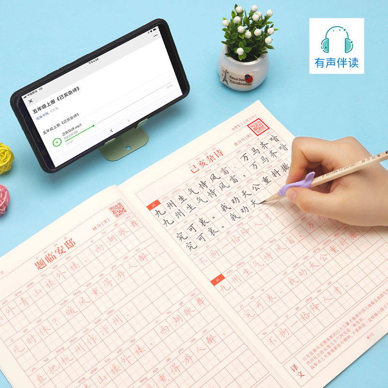 Copybook pupils ancient poetry practice copybook copy pencil tracing red book practice word artifact quick groove 21-day copybook children's primary school regular script beginner handwriting practice hard pen calligraphy practice calligraphy