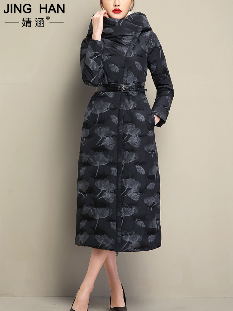 Color down jacket women 2020 explosion models super-long over-the-knee fashion hooded waist thickening woman to ankle jacket