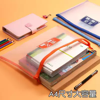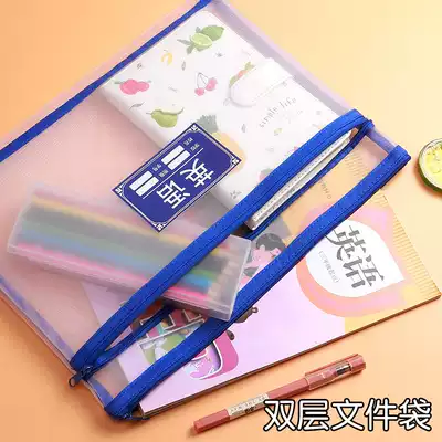 A4 file bag transparent mesh bag storage bag zipper information bag student tuition subject classification Chinese mathematics English comprehensive grid test paper subject homework zipper bag