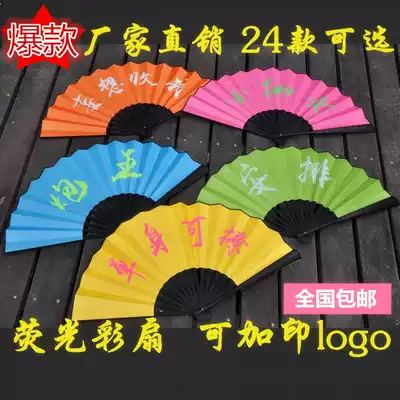 Bar nightclub fluorescent silk cloth bumpy fan Chinese style Hanfu men's and women's style ancient style wedding folding fan Net red custom