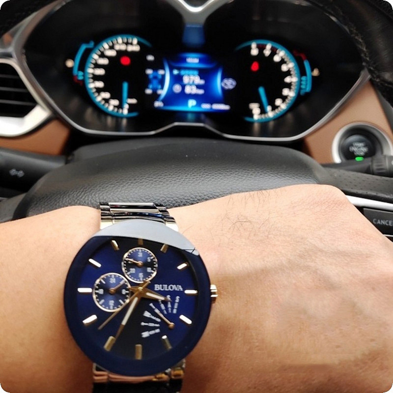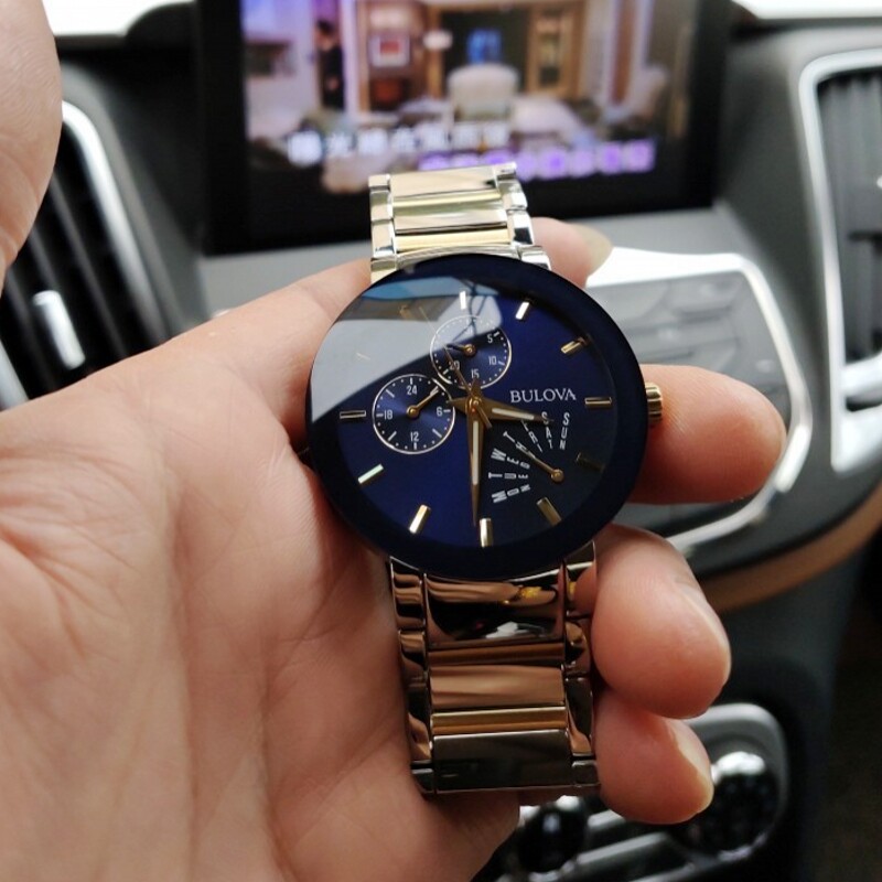 BULOVA Treasure Road Huagradually Gold Steel Band Reverse Jump Without Frame Blue Dial 98C123 quartz male watch-Taobao
