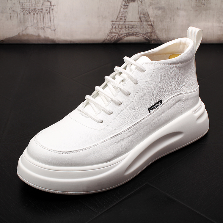 European Station Men's Shoes High Bunch Shoes Men's Korean Version Casual Board Shoes Sport Breathable Men Heightening small white shoes Men's genuine leather-Taobao