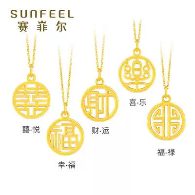 Saifel Fulu Xi Cai Shou 3D hard Gold hollow hollow Xifu character pendant yellow pyramid pendant pendant female