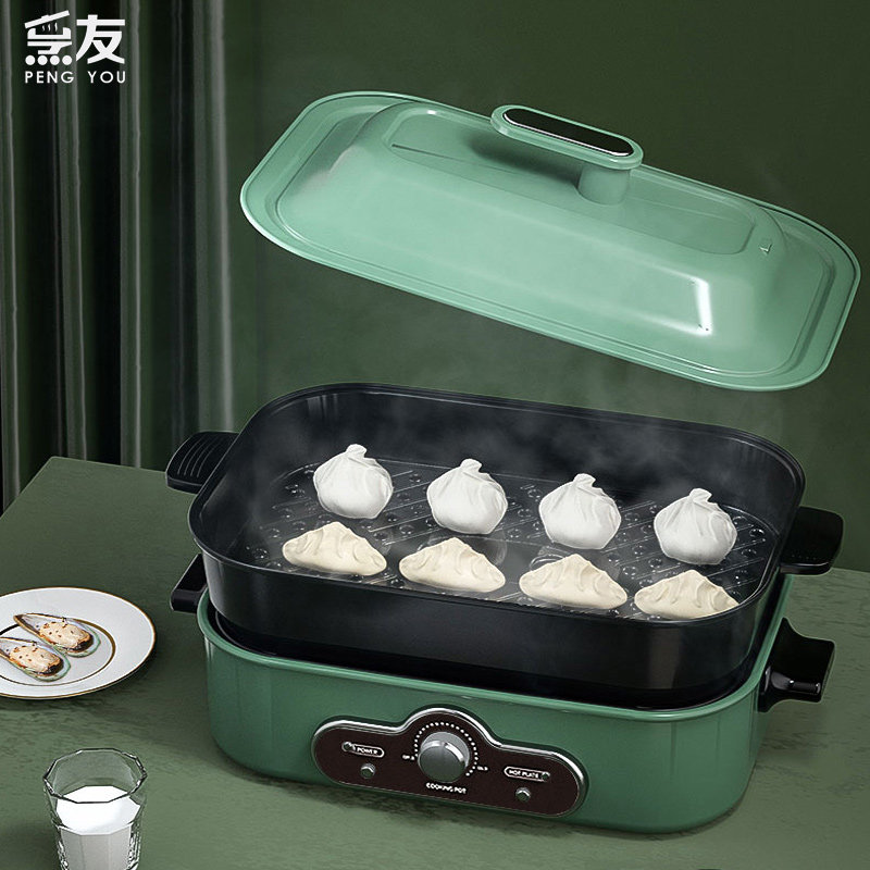 Electric oven Household barbecue machine Shabu shabu electric baking plate Dormitory hot pot BARBECUE frying multi-purpose dual-use integrated cooking pot