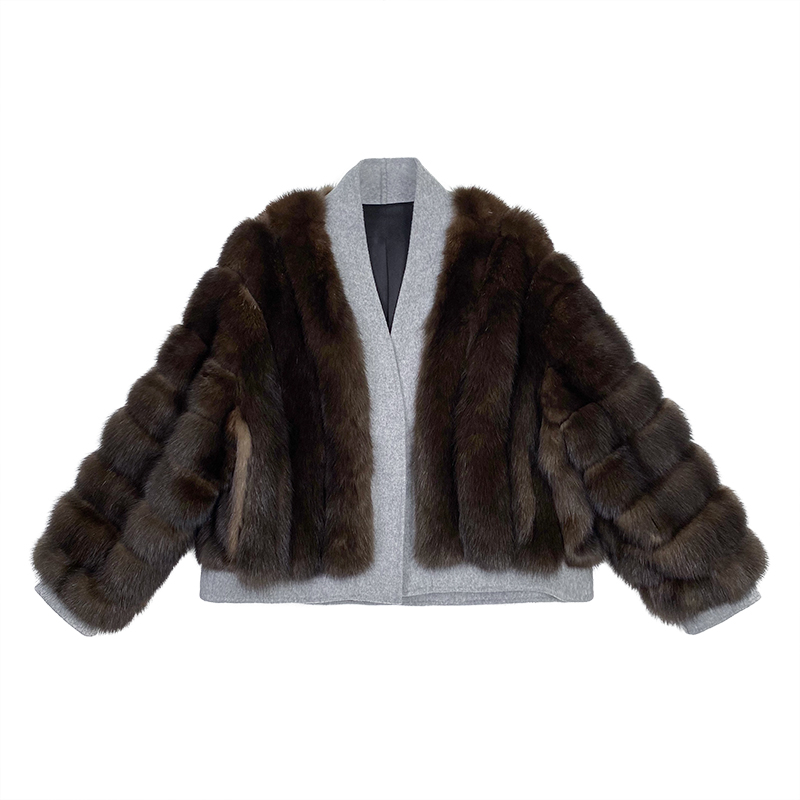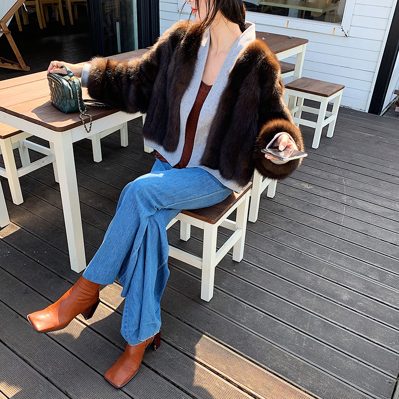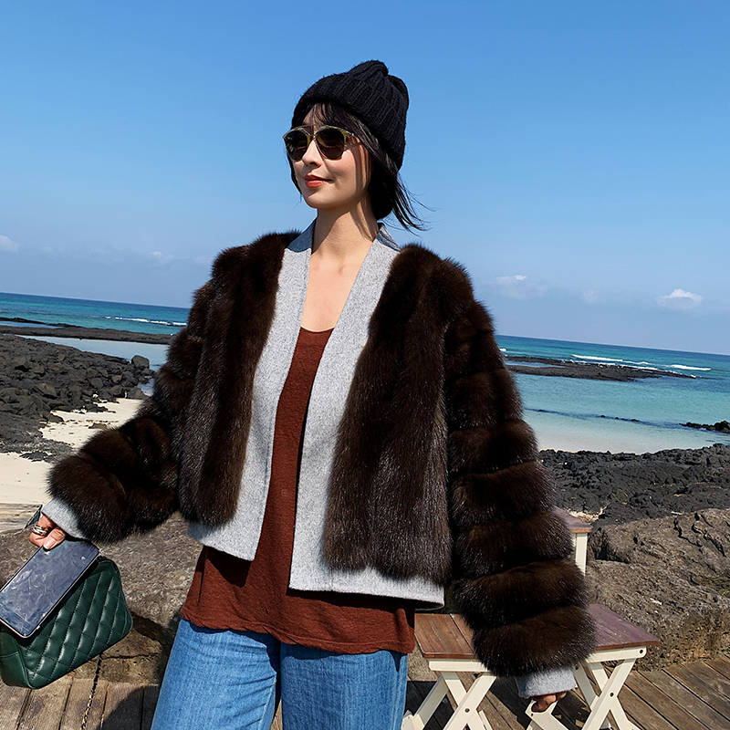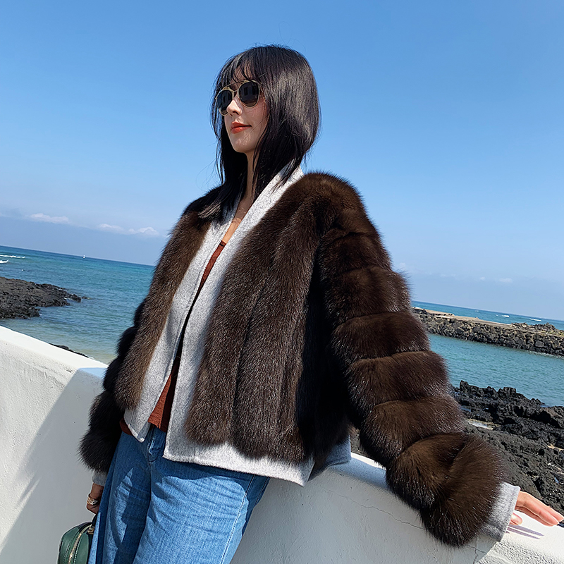 Yun - in - Russia imports a female - female - female - V - collar - coat fur coat
