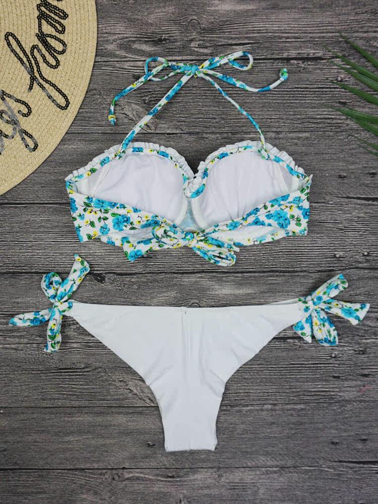 Broken Flowers High Open Fork Tinged Pants Bikini Honey Peach Hip Sexy Semi-Wrapped Hip Steel Care Lace Cute Bikini Swimsuit