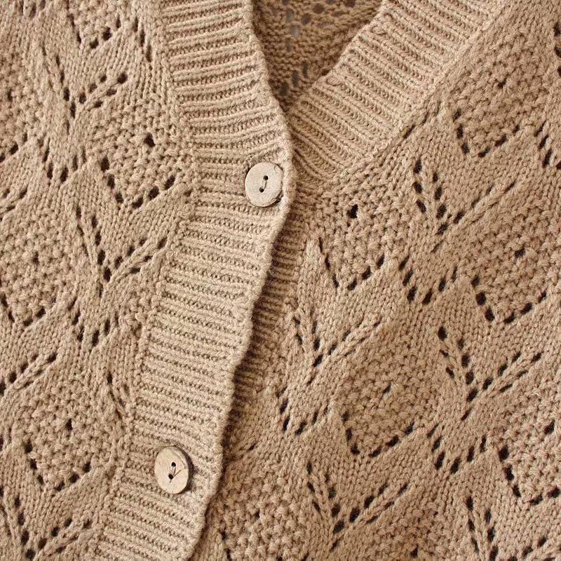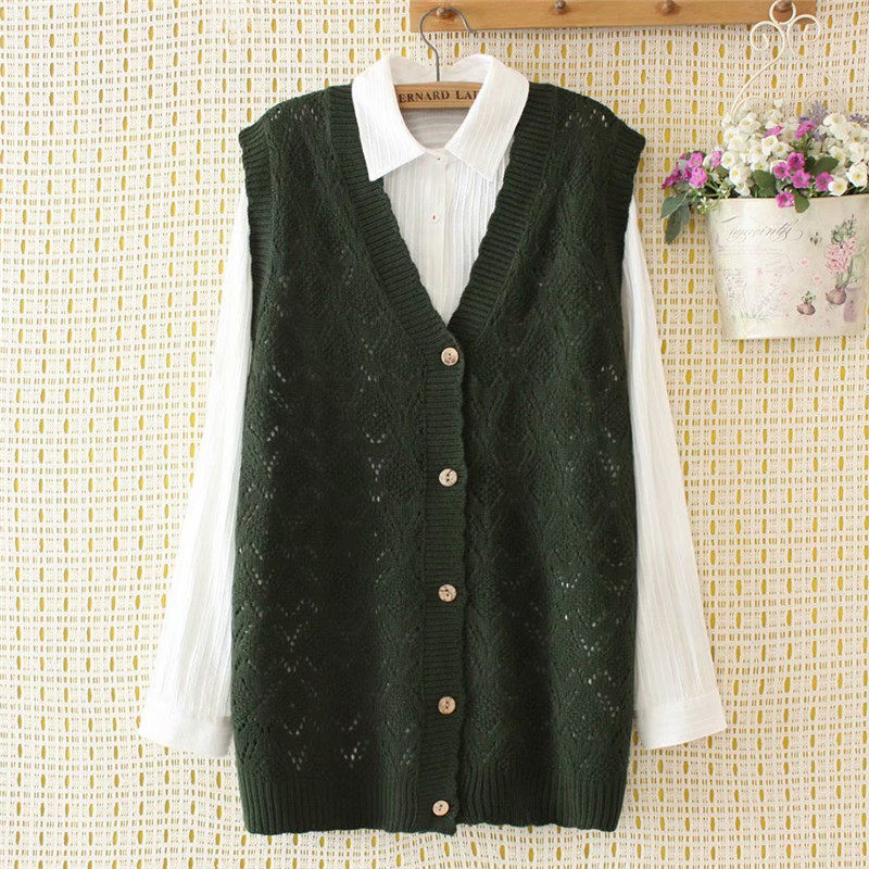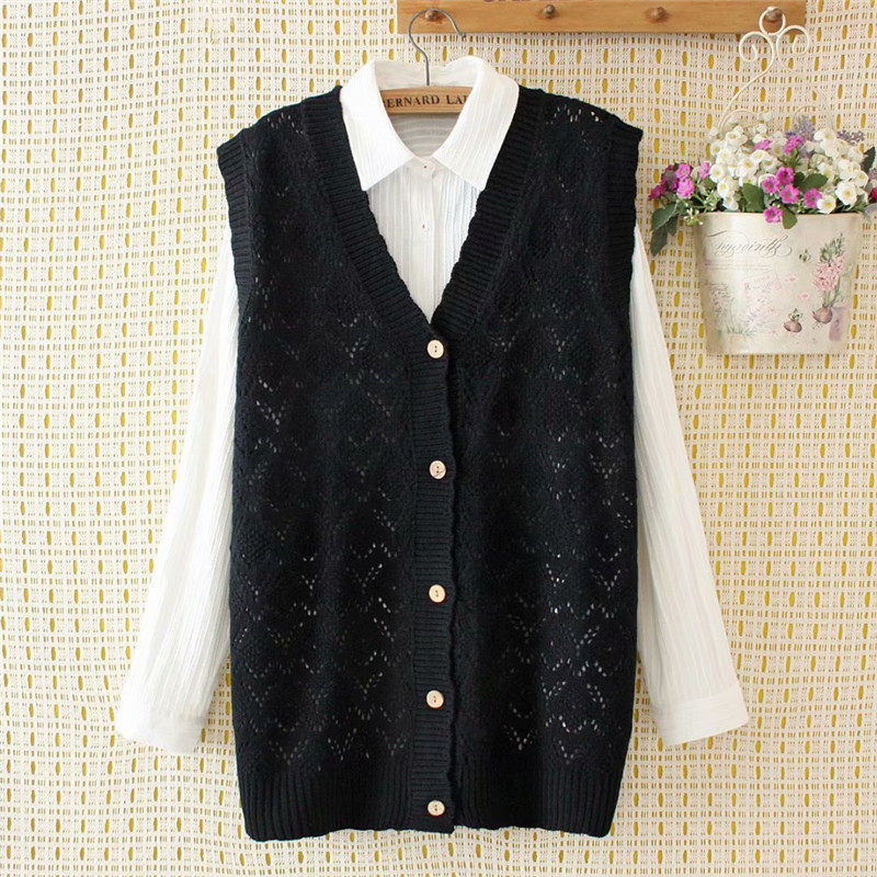 Middle-aged large-size women's openwork knitted vest 2021 spring new fat mother outfit Western-style wool cardigan vest