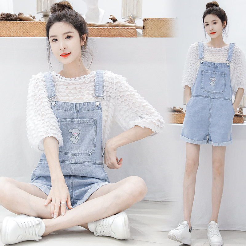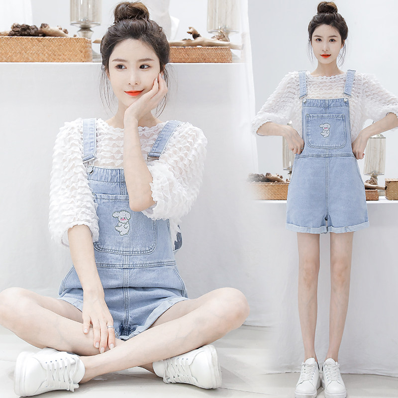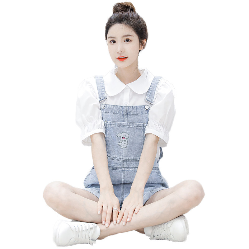 White shirt Blue baby bag pants two-piece white snow spinning top Blue baby bag pants two-piece single denim baby bag pants single white shirt single white Chiffon top