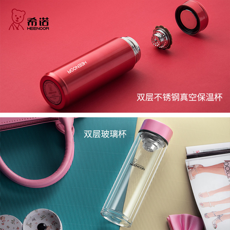 Xinuo thermos cup Double-layer glass Women's combination suit Business office bubble tea cup Car portable