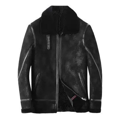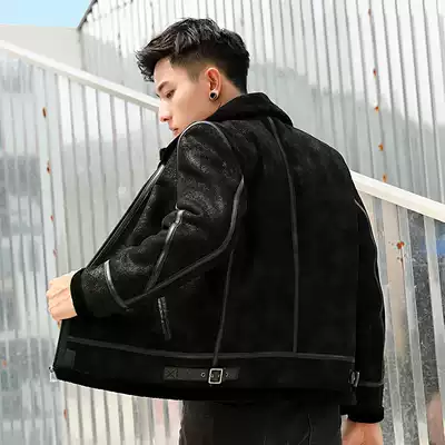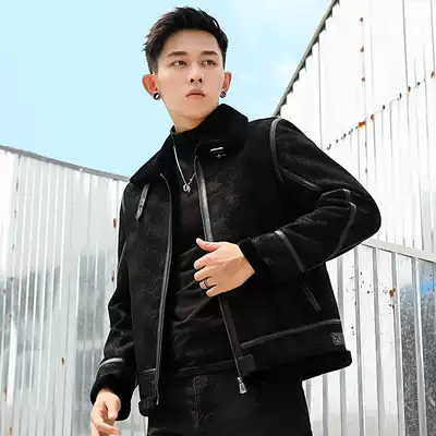 Leather and wool men's sheep cutting leather clothing Haining fur wool short leather clothing men's real fur coat winter