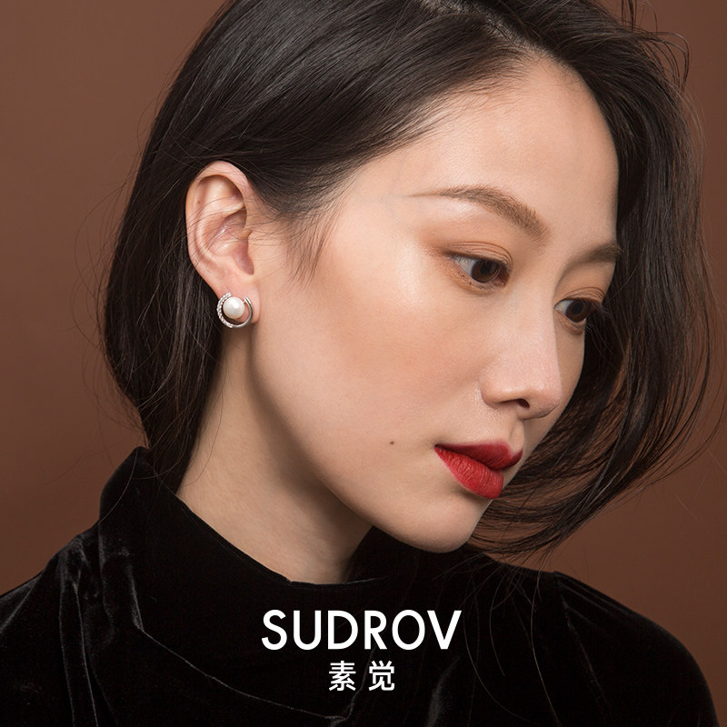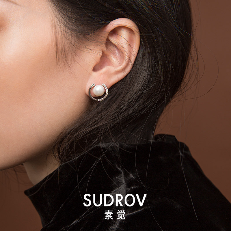 2019 new sterling silver freshwater pearl designer stud earrings women simple cold wind earrings jewelry temperament earrings trend