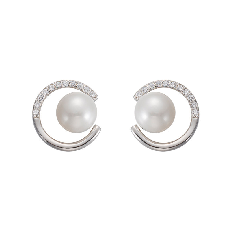 C-shaped pearl stud earrings