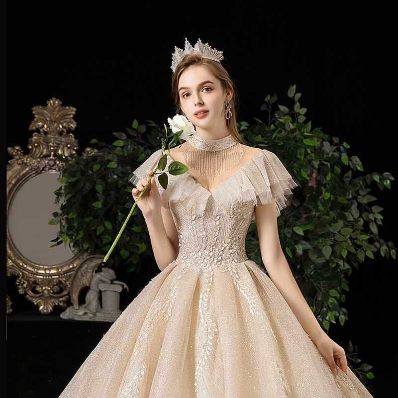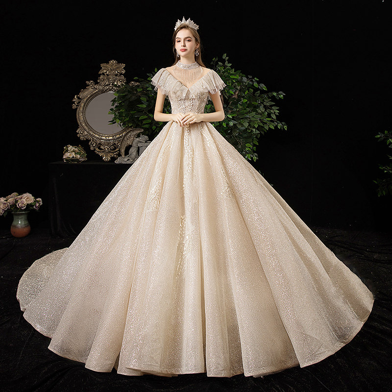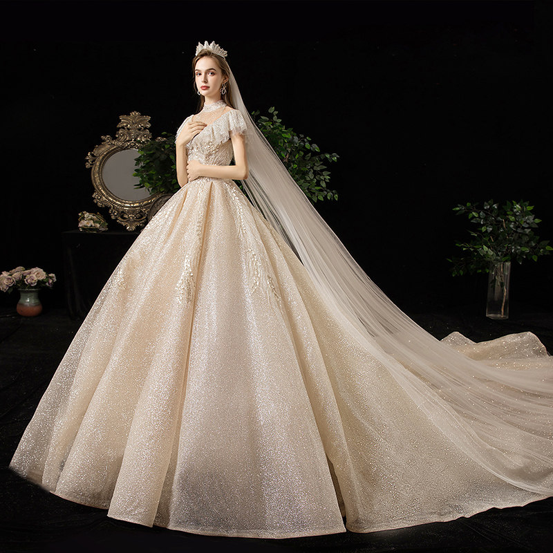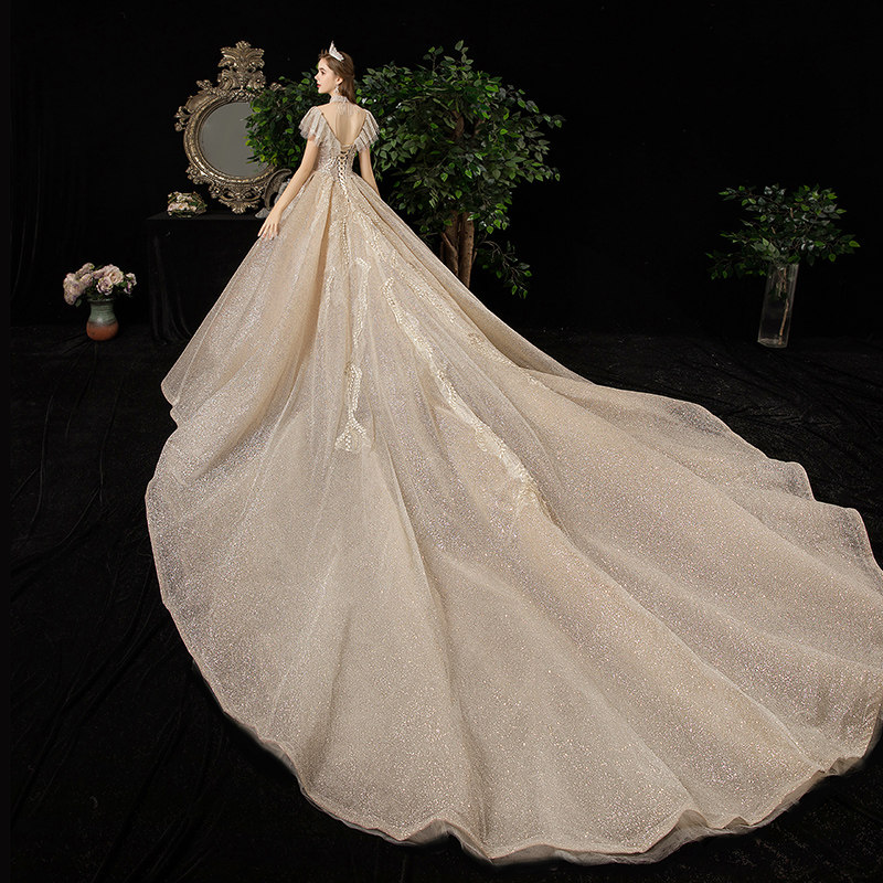 Starry sky wedding dress 2022 new bridal standing collar looks thin luxury luxury Sen Super Immortal Dream Princess trailing