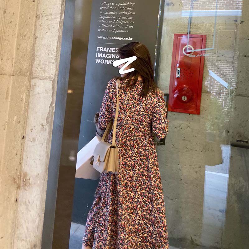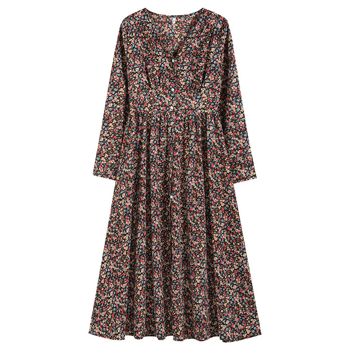 Via Vela French floral bellflower skirt waist thin V-neck oil painting retro beautiful girl dress woman
