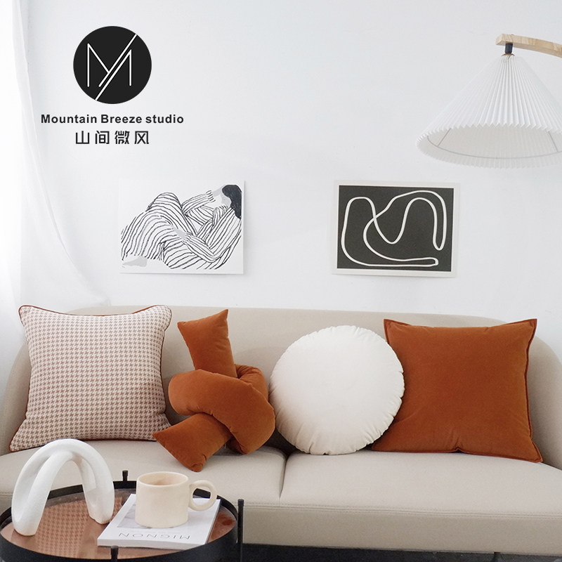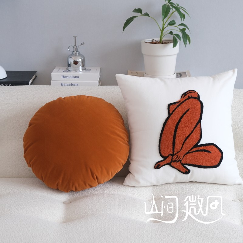 Dark Orange 87 Geometric Embroidery Orange Cross-legged Girl Embroidered Beige Velvet Flash Orange Dark Orange Dark Orange Velvet Round Pillow Beige Velvet Round Pillow White Woven Lantern Tassel Round Dark Orange