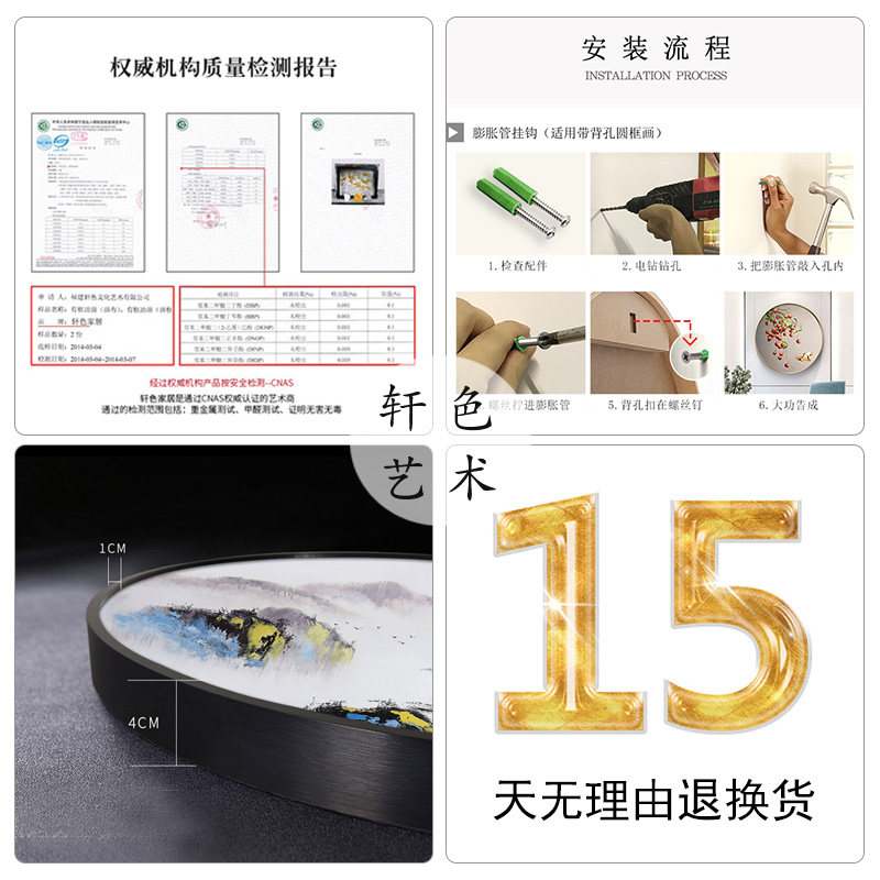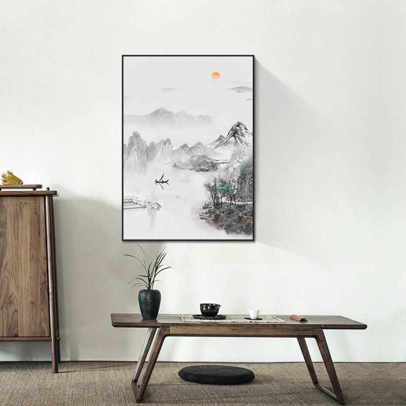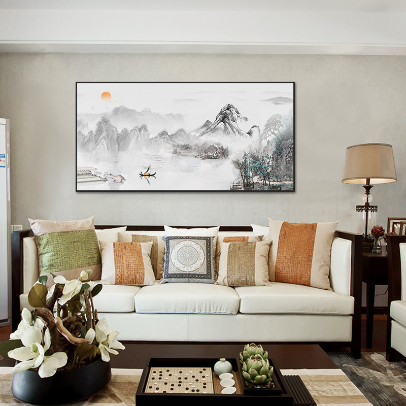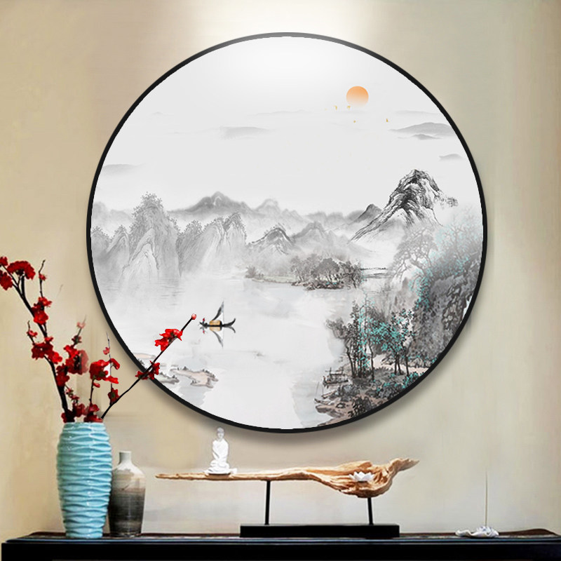 Hand painted oil painting Landscape landscape painting Living room entrance New Chinese decorative painting Ink painting hanging painting Round dining room mural