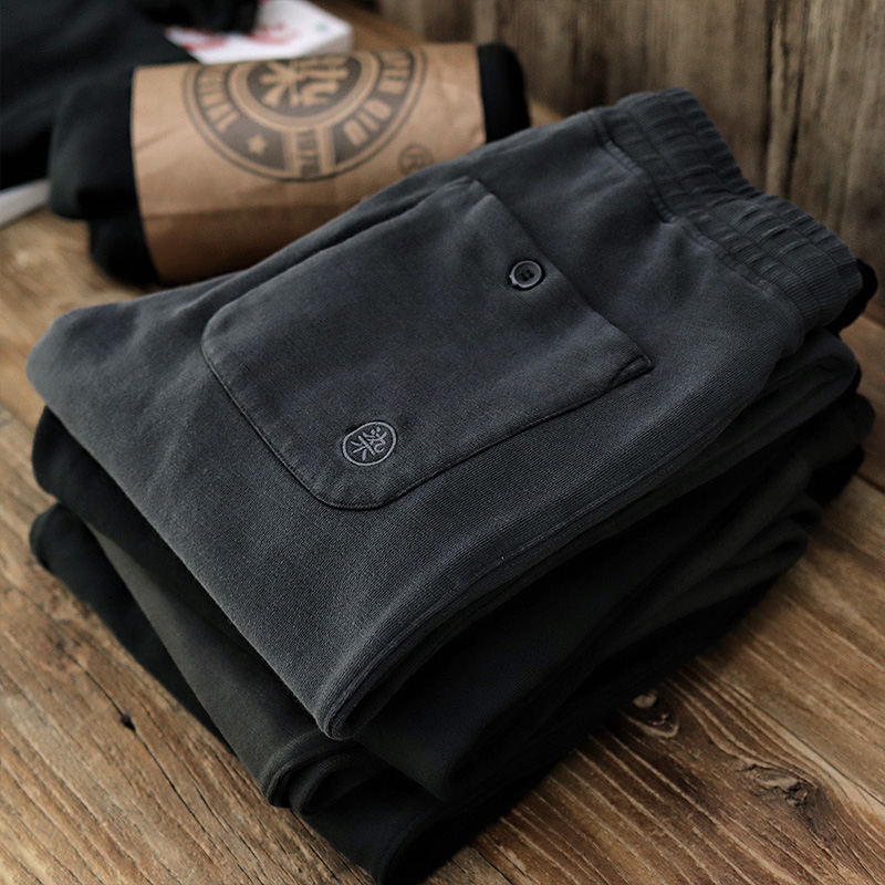 Cotton knitted pants men's American style retro old drawstring autumn and winter plus velvet sweatpants casual closing beam feet pants men