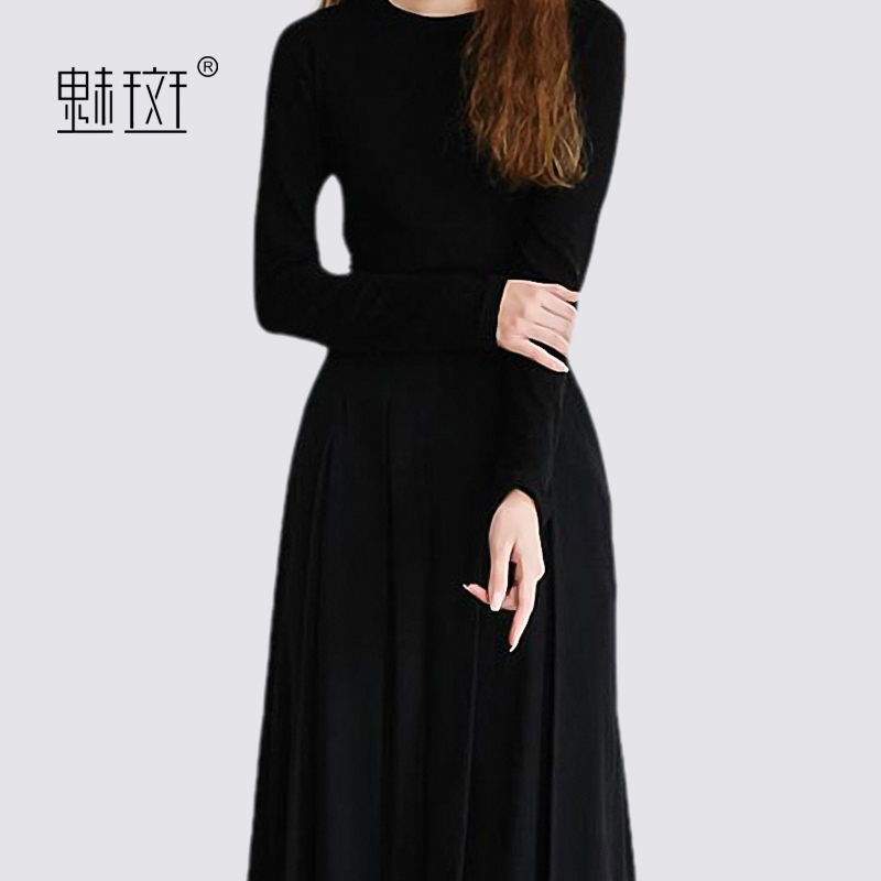 The Phantom 2021 new conspiculy slim black dress Women autumnale with long sleeve temperament Long version A word dress for a dress