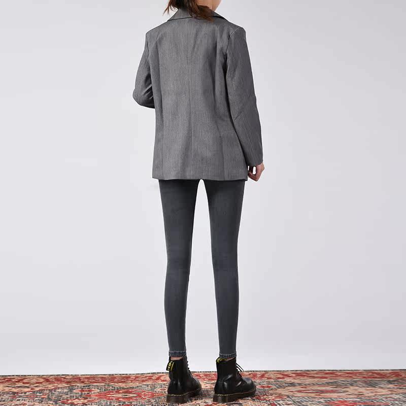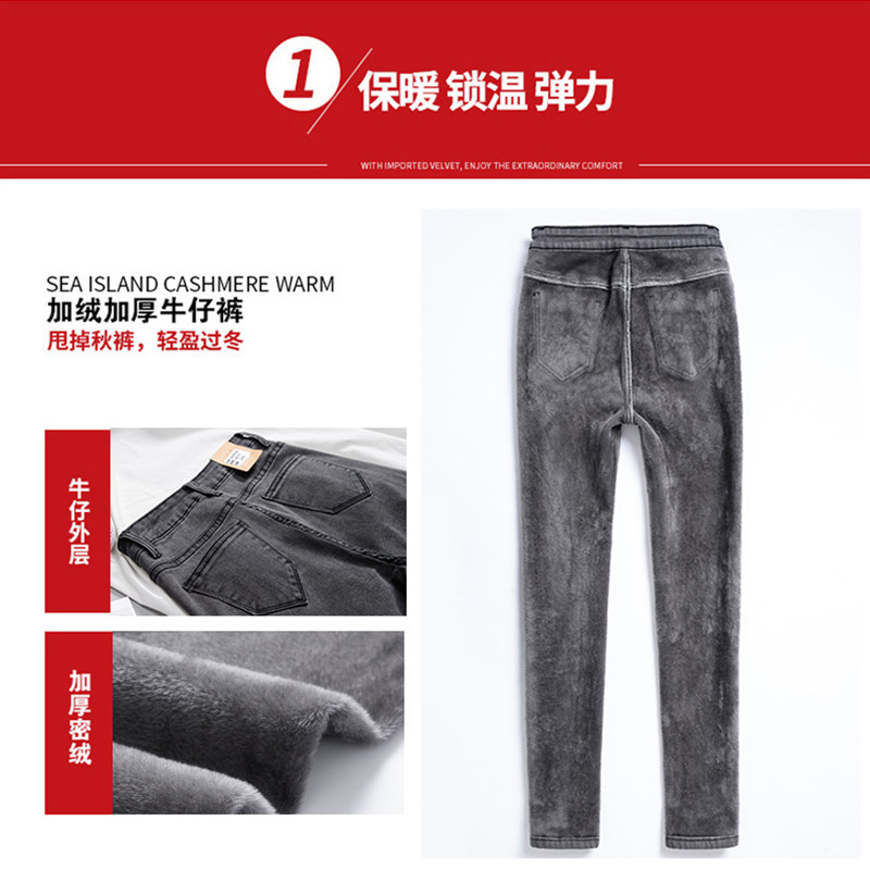 High waist smoke gray velvet jeans women's winter 2020 new outside wear warm nine-point small feet thickened pants tide
