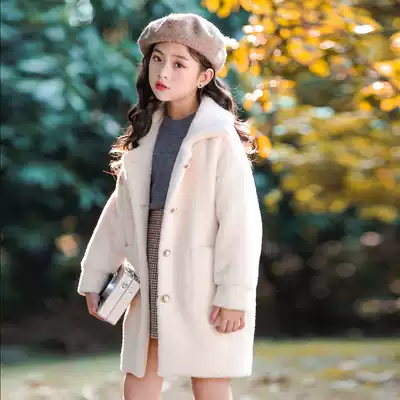 Girl woolen coat 2021 new foreign style Korean girl Autumn Winter Dress big children's clothing mink fluff coat