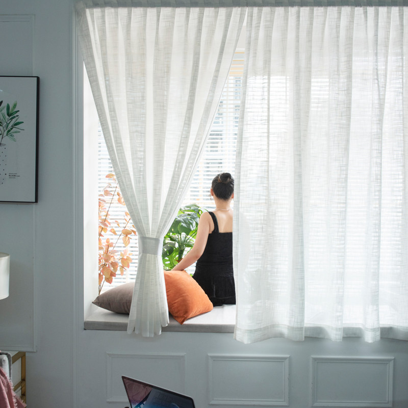 Light-transmitting non-penetrating veil curtains without punching installation Velcro self-adhesive white bay window partition small short door curtain gauze curtain