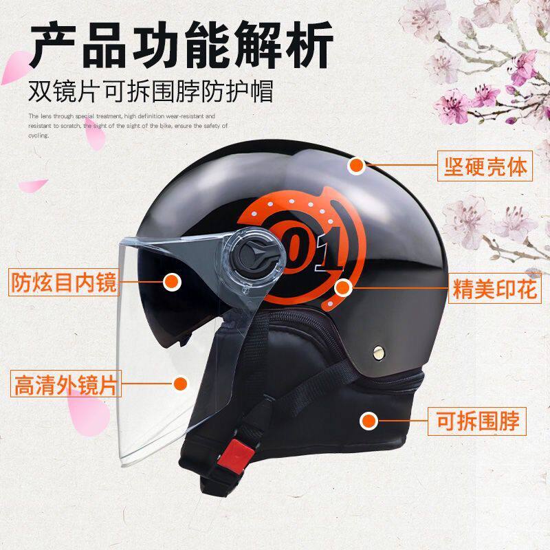 Junhao Long double lens electric car helmet gray men and women Four Seasons cute half helmet winter summer light helmet