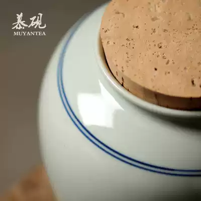 Mu Yan Japanese Cork tea jar gray glaze blue and white double line wake-up tea cans retro kung fu tea set tea bin storage tea cans