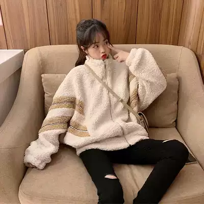 Sweetclothes plus velvet thickened women 2021 new autumn and winter loose Korean lazy wind high collar lamb coat tide ins