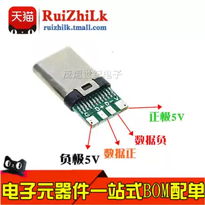 Type-c plug USB3 1 male DIY audio fast charge data charging welding wire connector forward and reverse plug