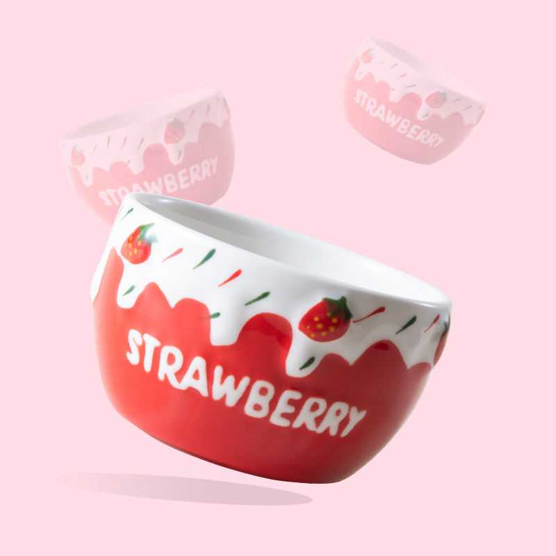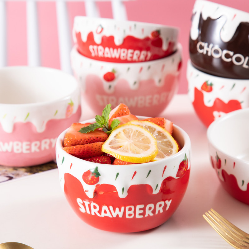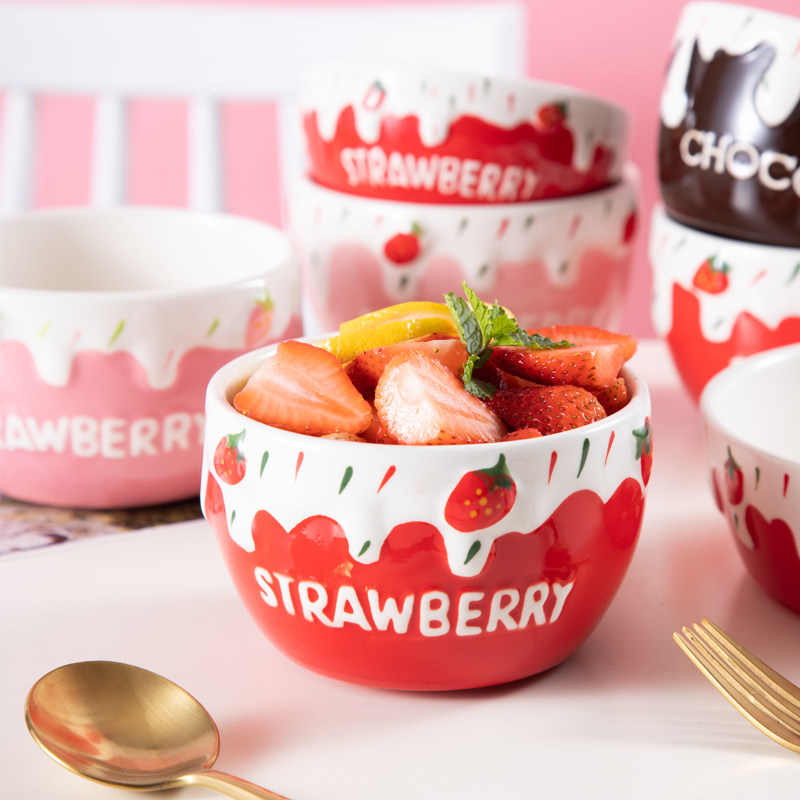 Creative Fruit Strawberry Bowl Vegetable Salad Bowl Cute Teen Hearts Ins single rice bowls Home Ceramic Bowls Single
