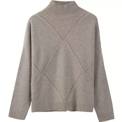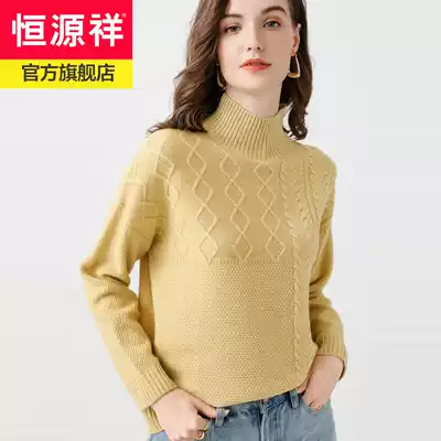Hengyuanxiang semi-turtleneck thick cardigan women's autumn and winter retro bright silk loose New Year red sweater off-the-shoulder sleeve sweater