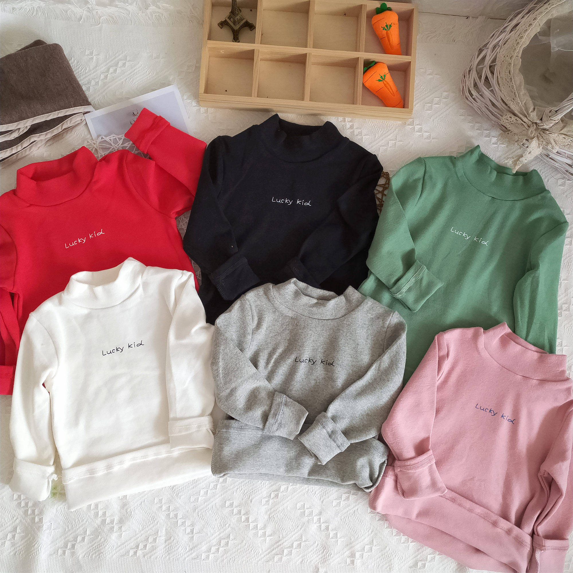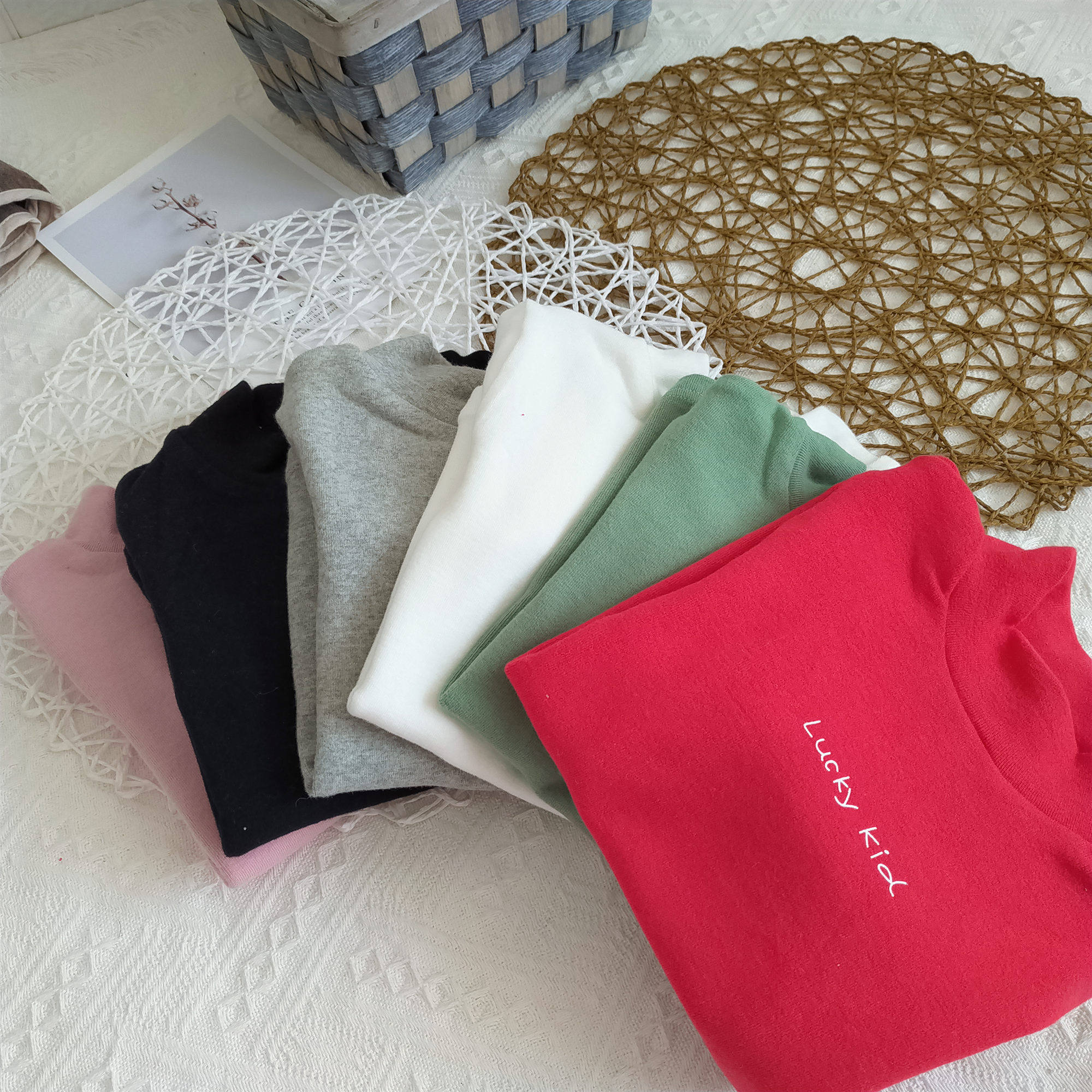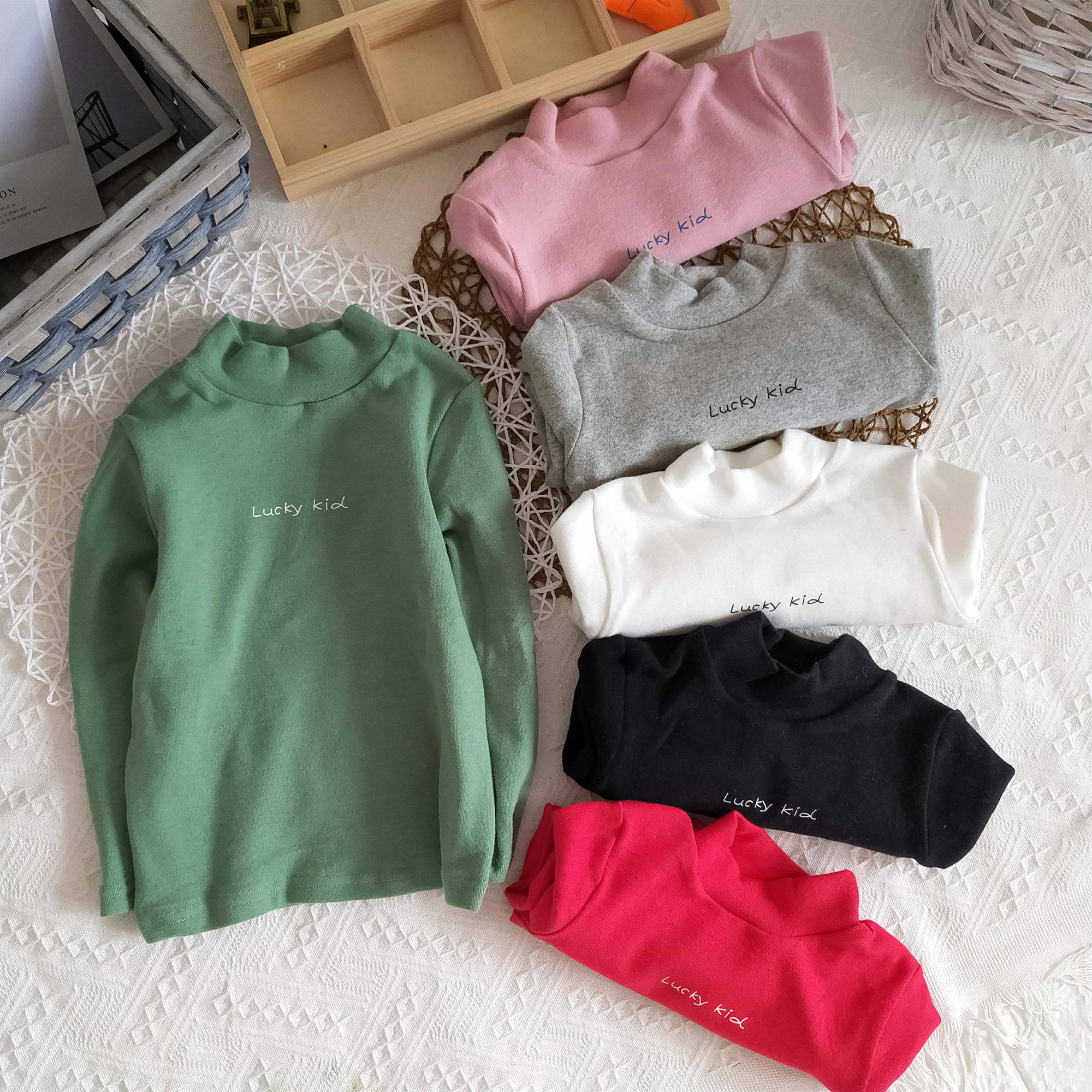 19 new male and female children half high collar letters thickened undershirt child autumn and winter foreign pie blouse baby long sleeve T-shirt