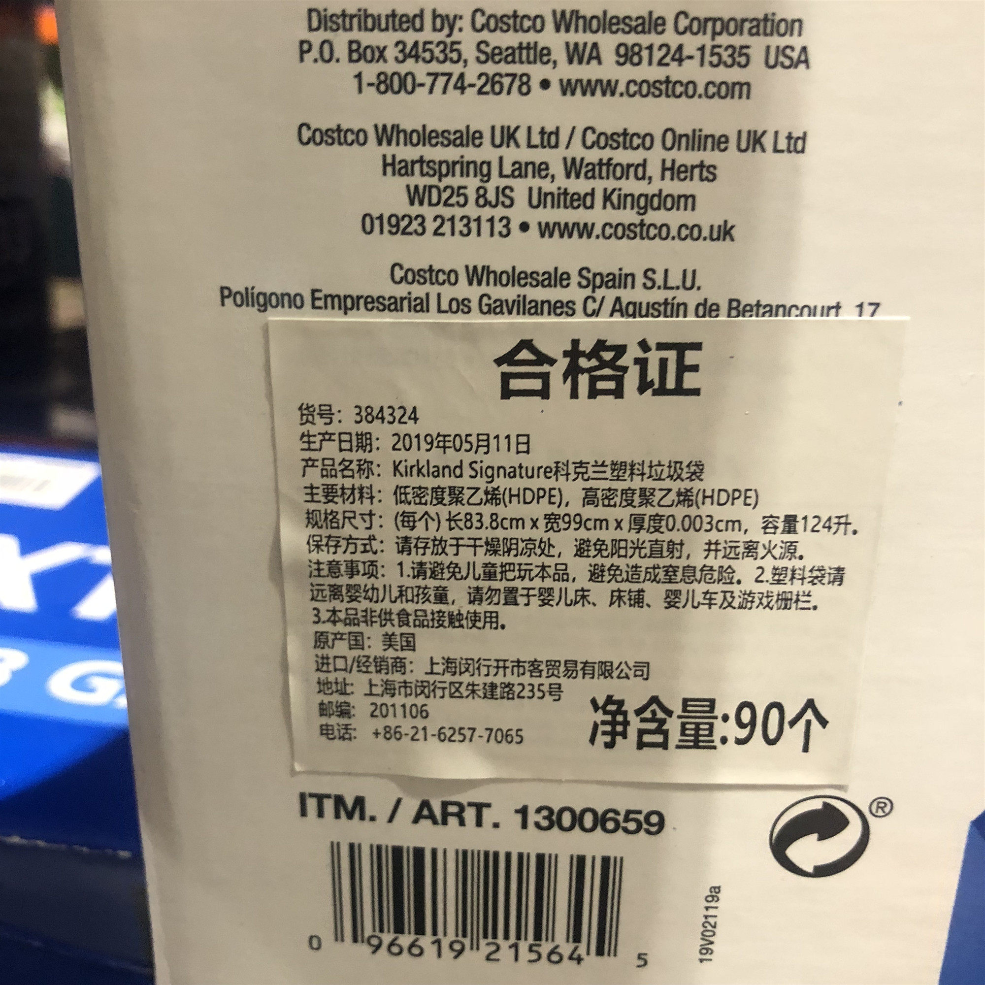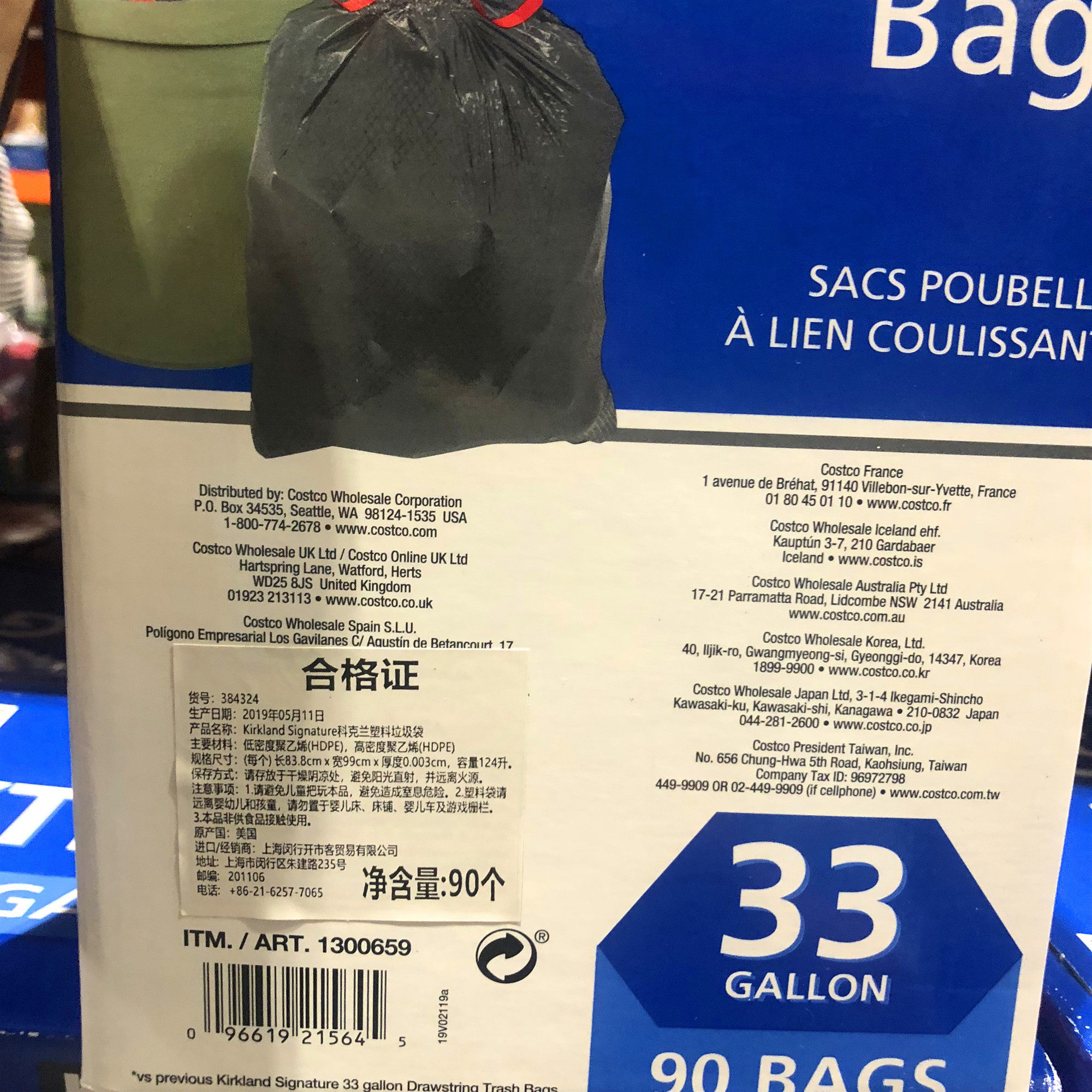 Import KIRKLAND Kokland Plastic garbage bags Handmade 124 liters x90 bag Costco Domestic