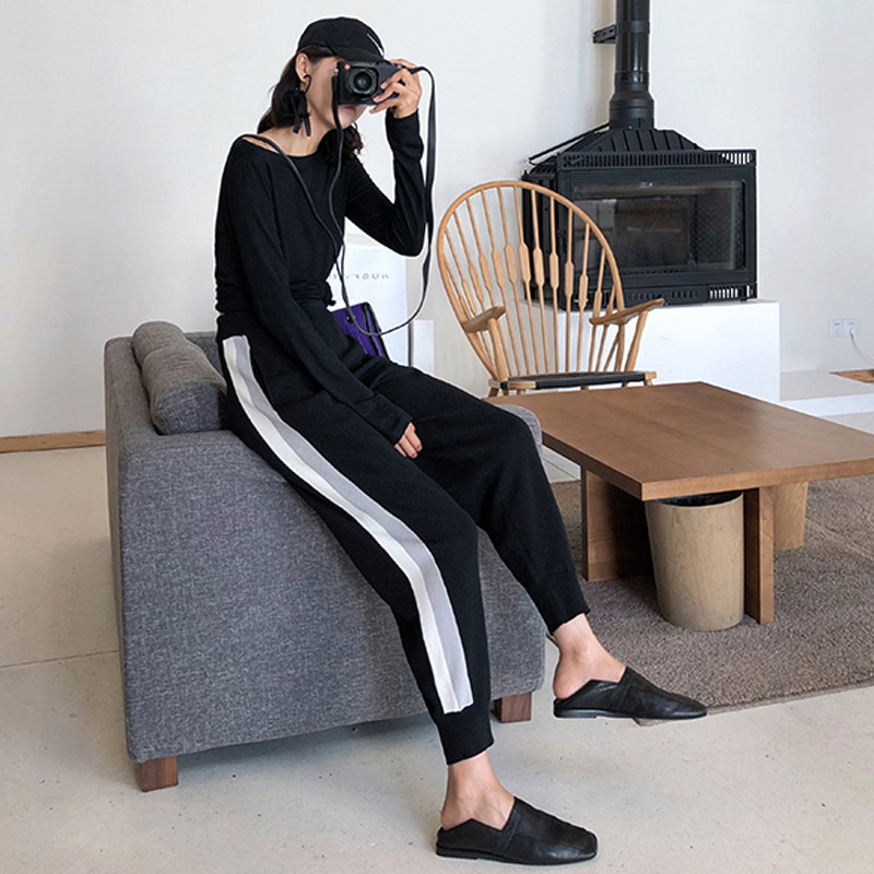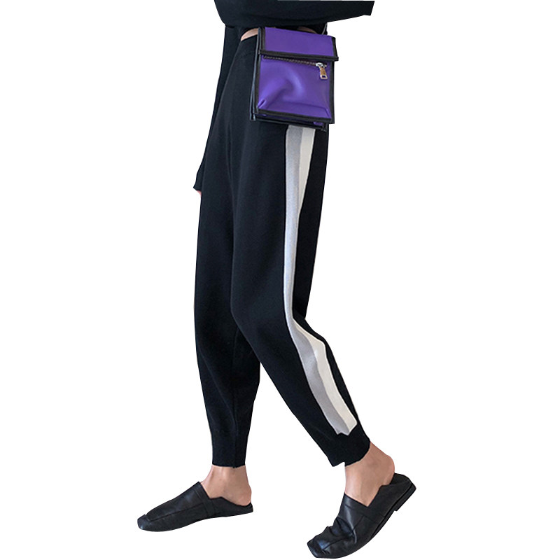 Pregnant women's pants autumn and winter 2021 new velvet thickened color matching knitted casual sports harem pants spring and autumn outer wear trendy