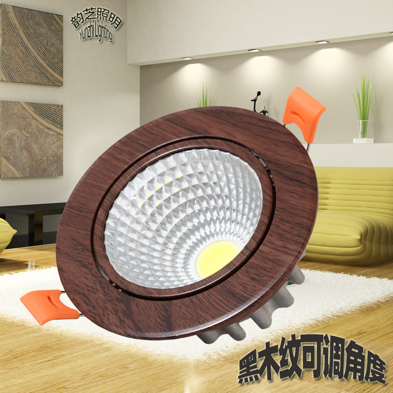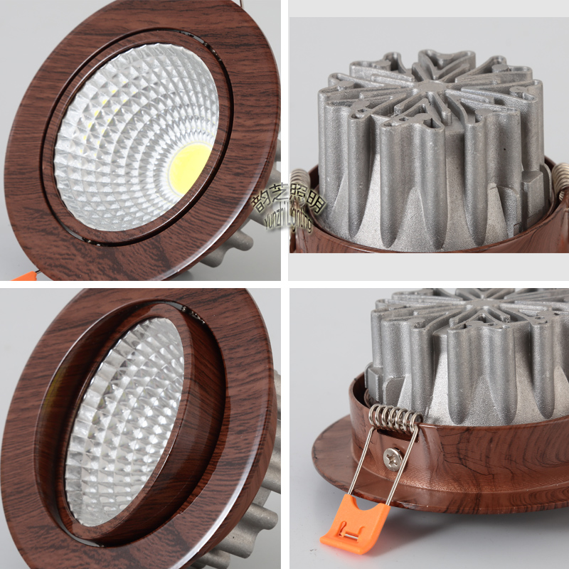 LED Chinese style spot light COB wood grain downlight Black three-dimmable ceiling light Modeling light Embedded spot light Walnut color