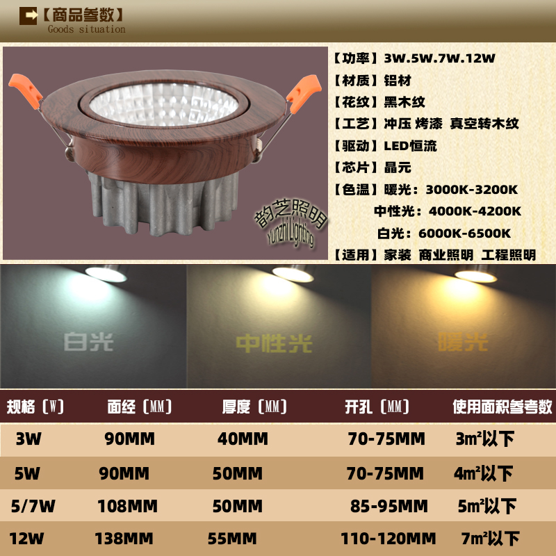 7-7 5CM Drilling 3W White light 7-7 5CM Drilling 3W Warm light 7-7 5CM Drilling 3W Neutral light 7-7 5CM Drilling 5W White Light 7-7
