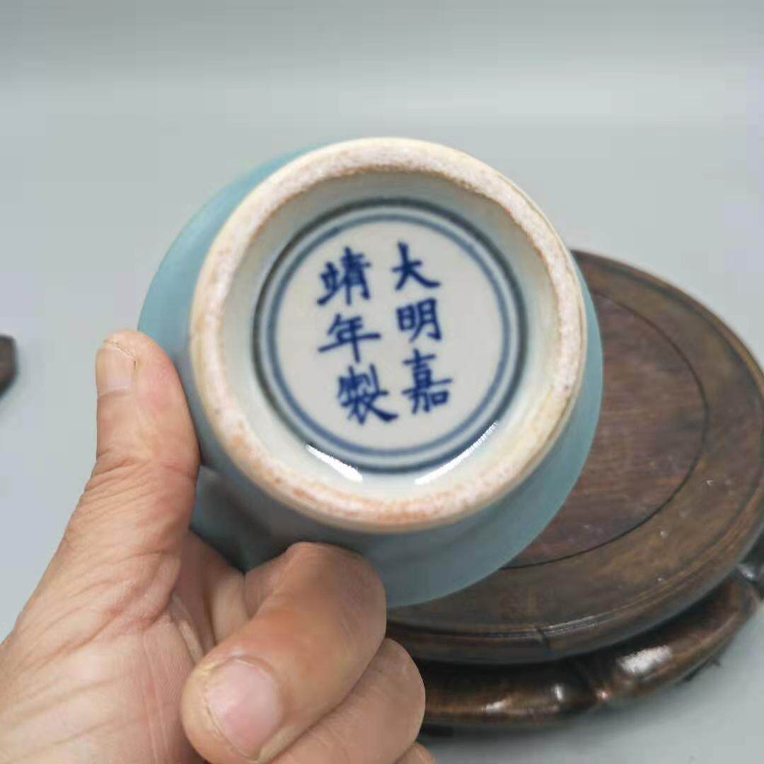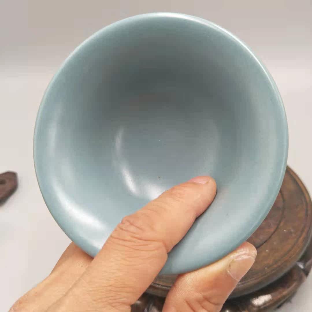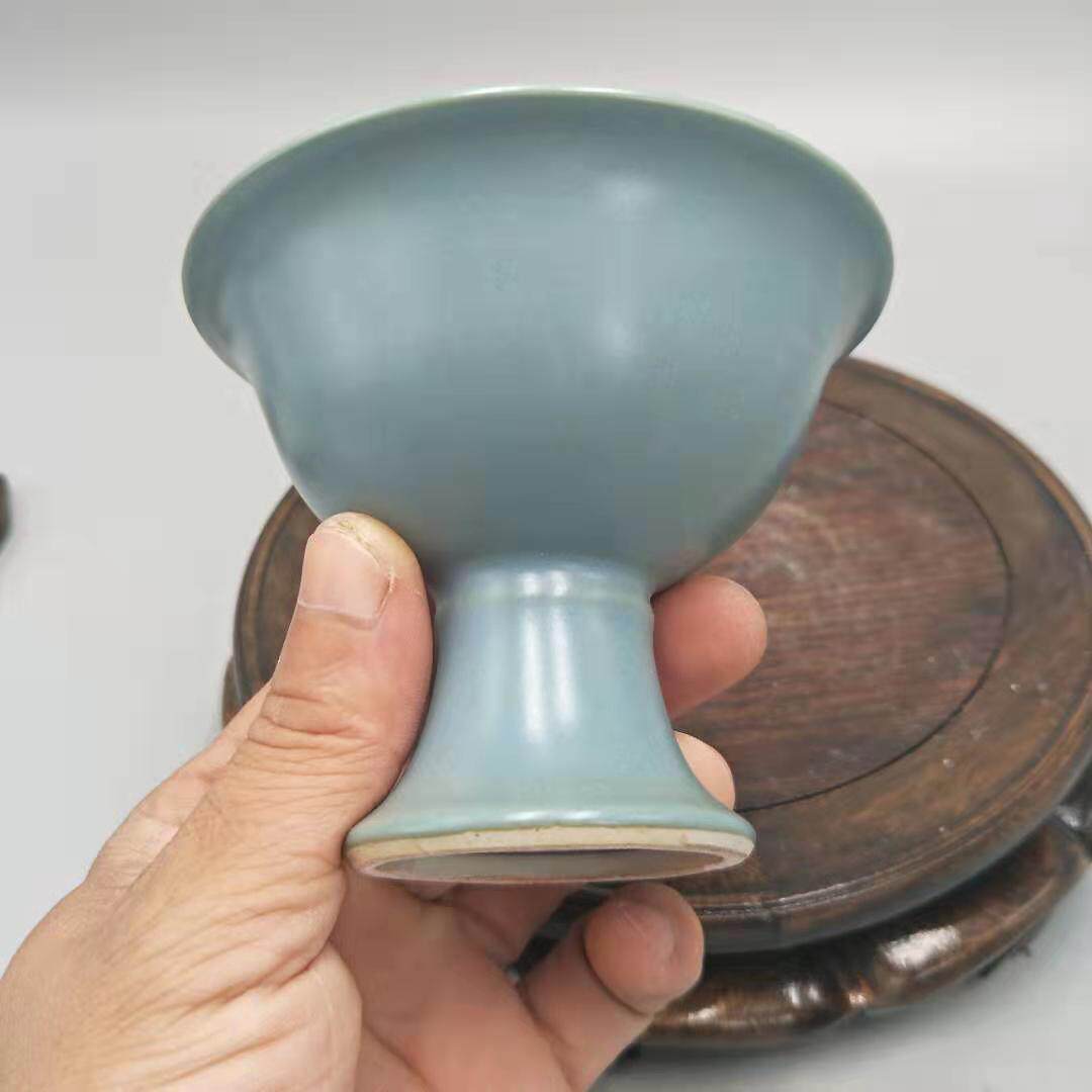 Ming Imitation Song Ru Kiln Green Glaze all hand made with high foot cups Antiquity ancient play Old stock Old stock Imitation Antique Porcelain Collection-Taobao