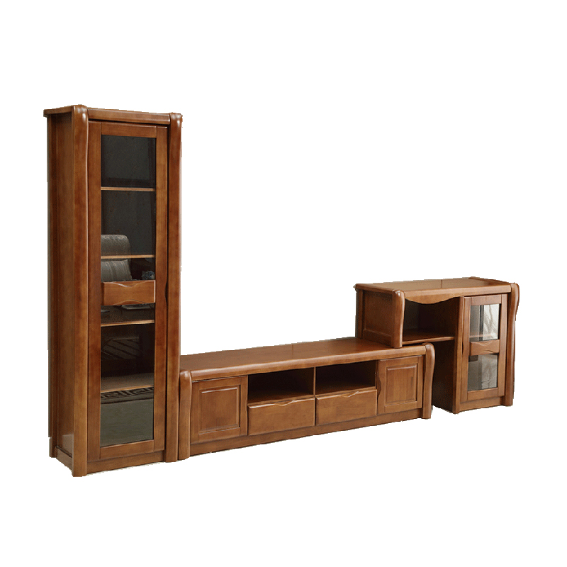 Living room TV cabinet combination solid wood Chinese style video cabinet simple modern coffee table floor cabinet background wall cabinet high and low side cabinet
