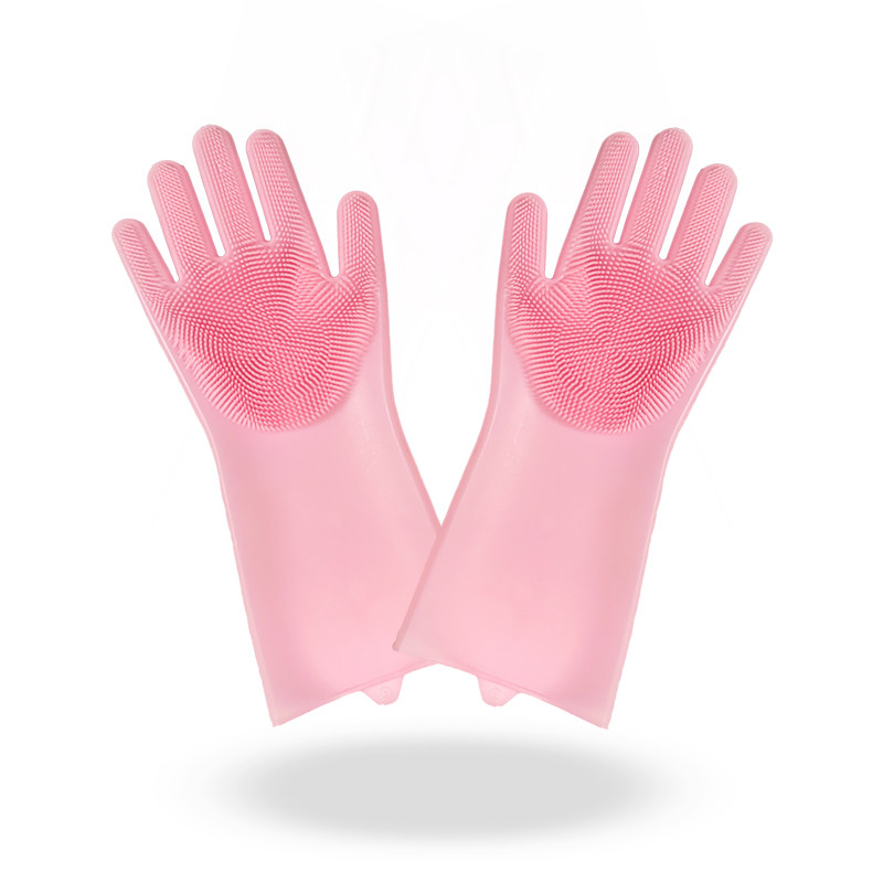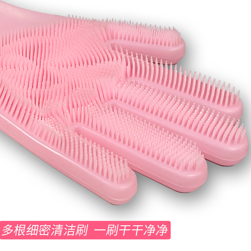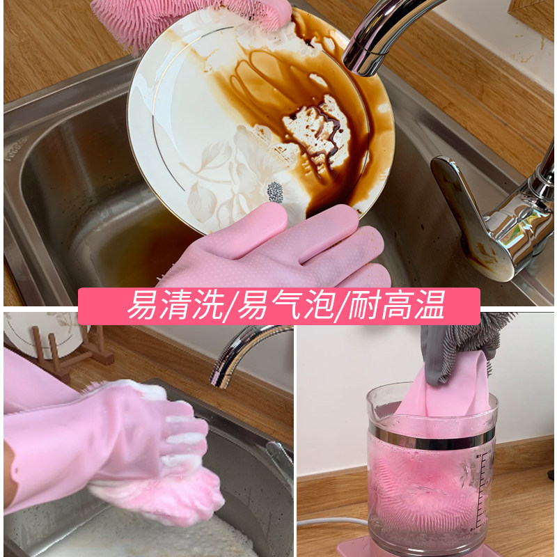 Silicone dishwashing gloves waterproof oil proof housekitchen brush dishwashing dishwashing and durable thick anti-burning brush gloves