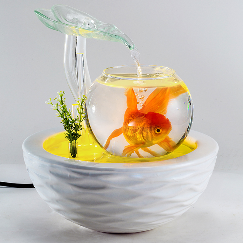 European-style small fish tank creative feng shui ball flowing water to make money living room desktop decoration free water glass fountain goldfish tank
