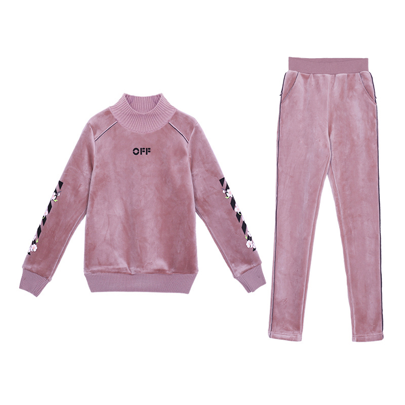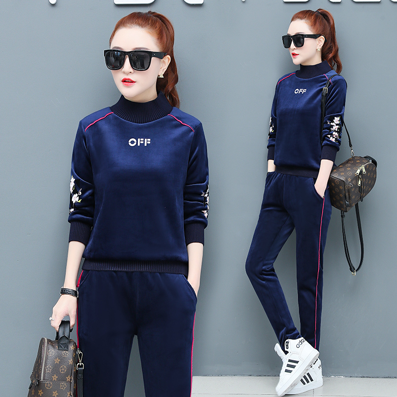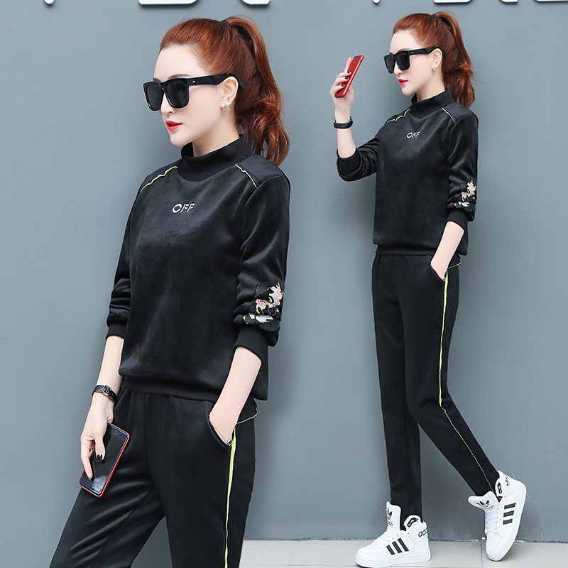 Large size women's casual sportswear 2021 autumn and winter new fashion sweater gold velvet plus velvet padded two-piece set