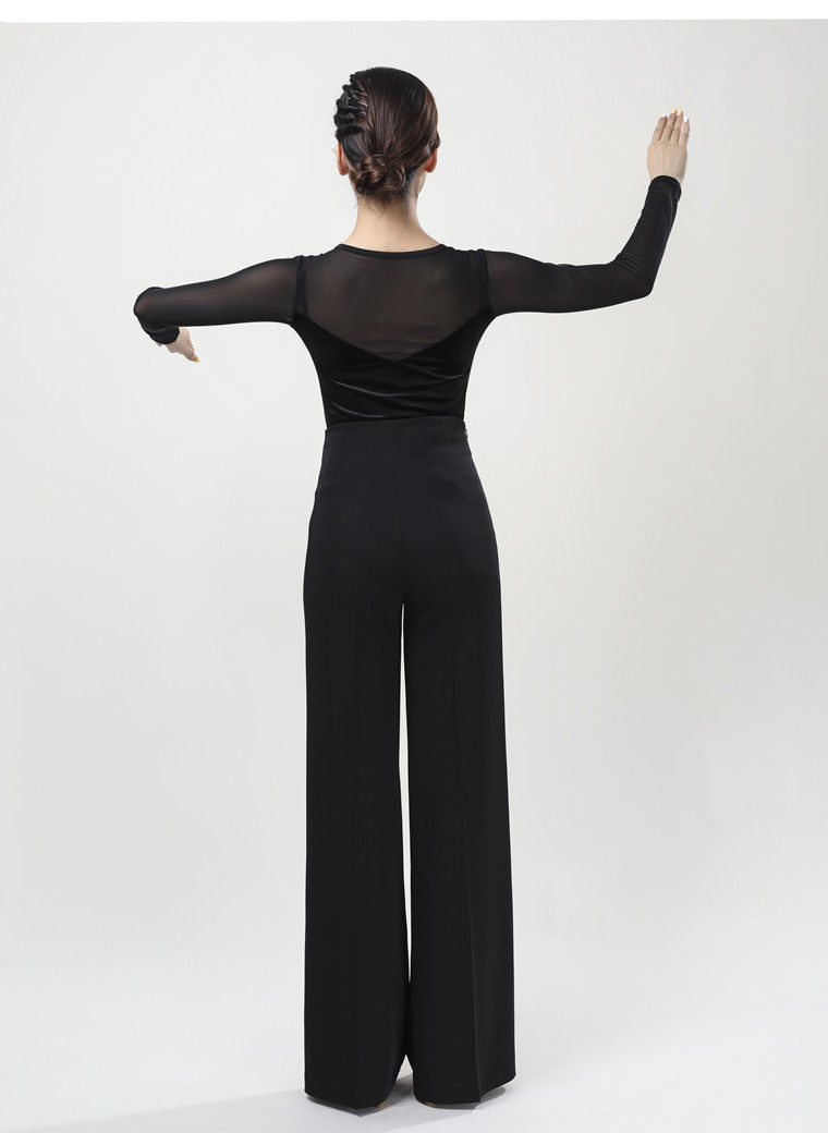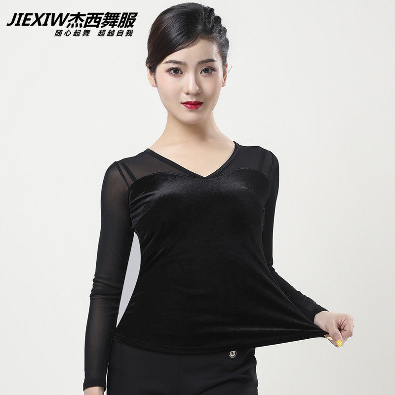 Fire Leaf Flower new modern dance tops long-sleeved adult velvet Latin practice clothes women's autumn and winter national standard dance tops