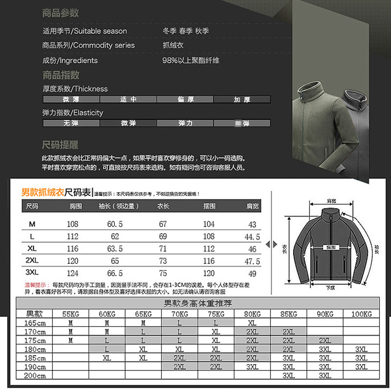 Archon Tactical Outdoor Fleece Men's Autumn and Winter Cardigan Fleece Sweater Jacket Jacket Thickened Liner