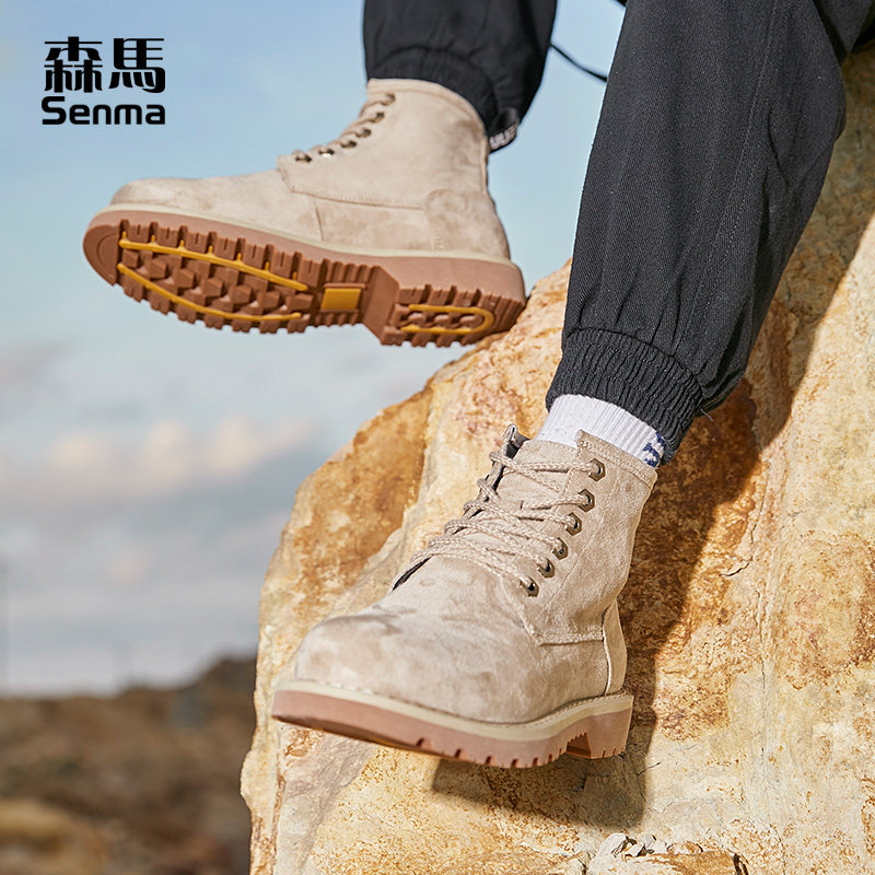 Semir Guochao Martin boots men's tooling new short boots all-match autumn and winter plus velvet warm British style high domestic shoes
